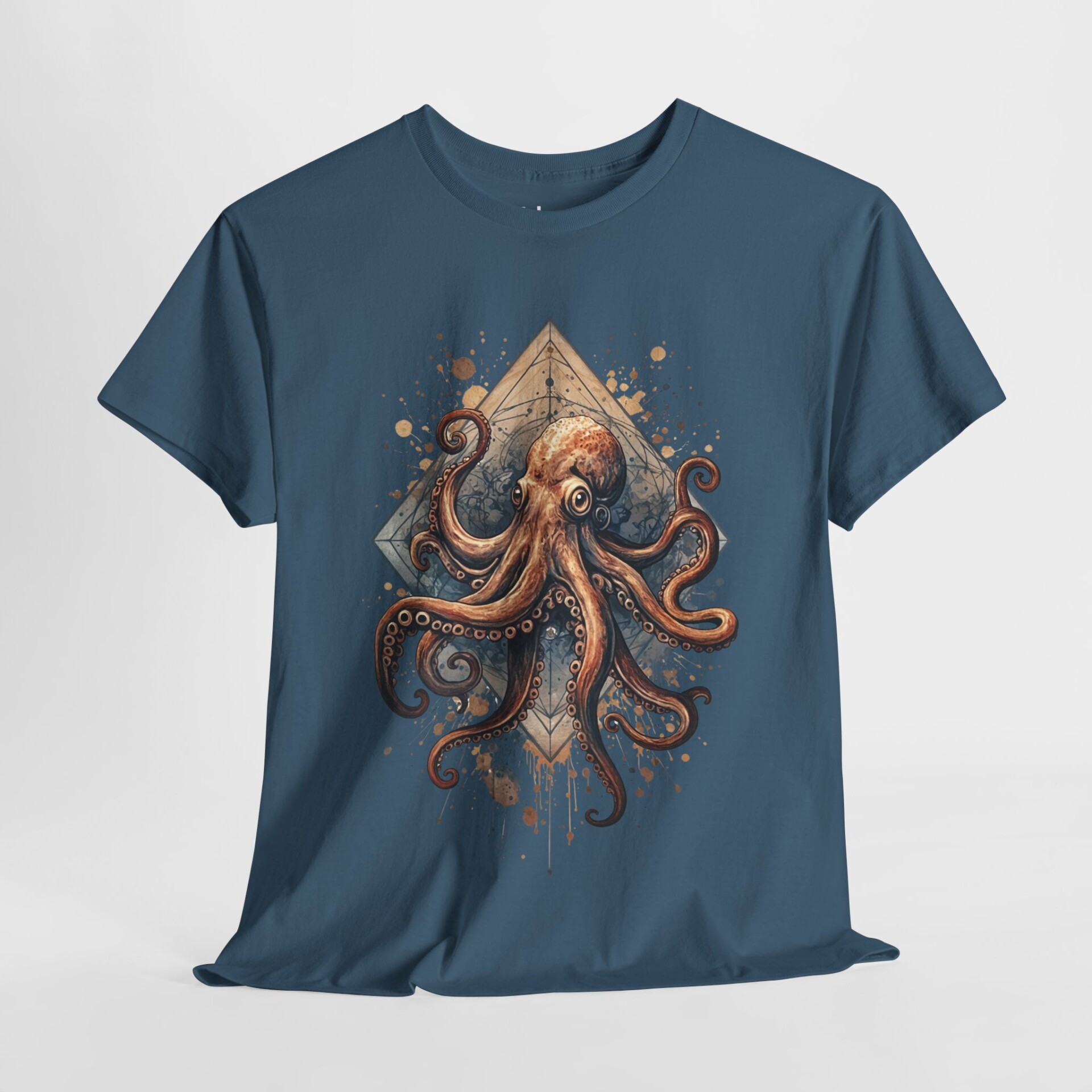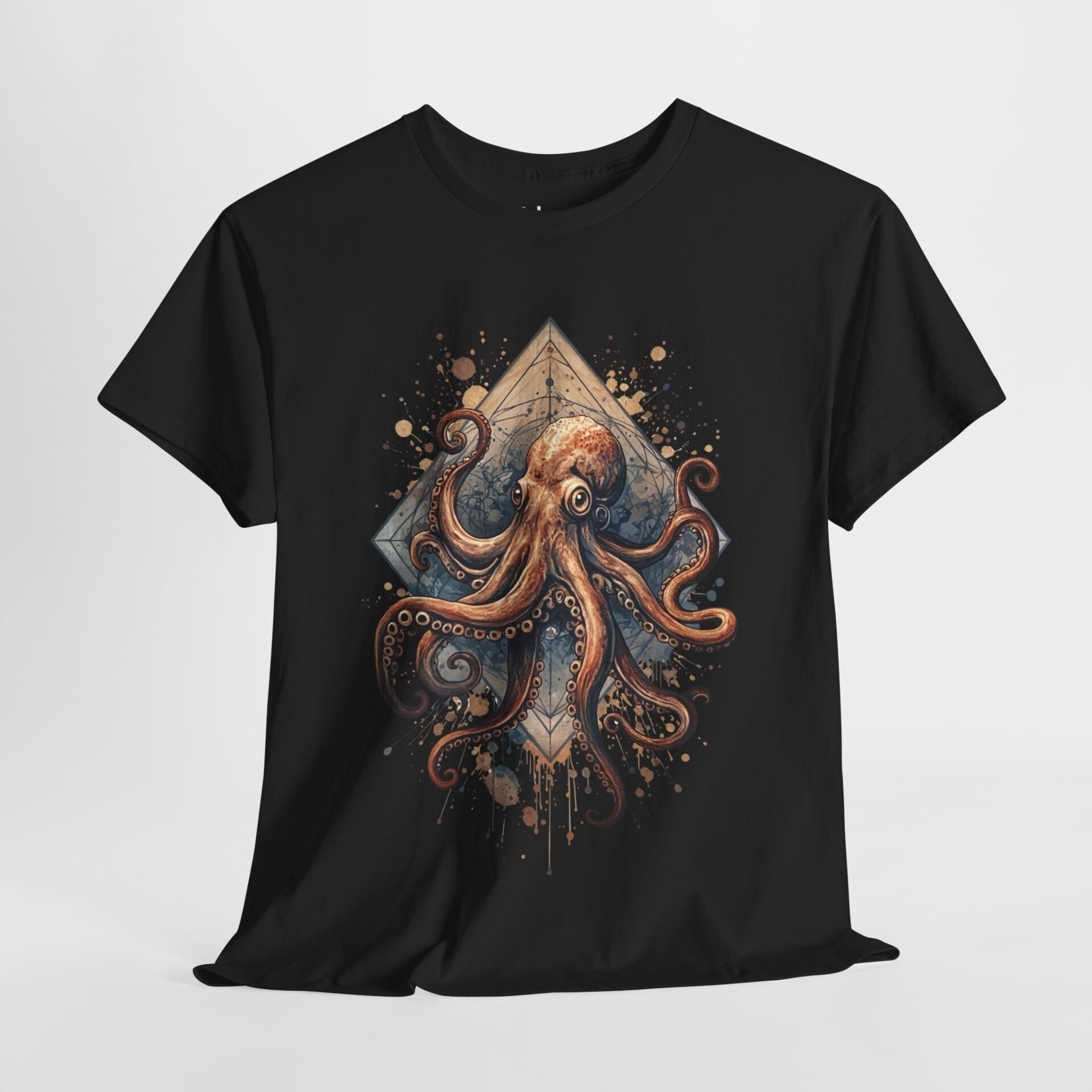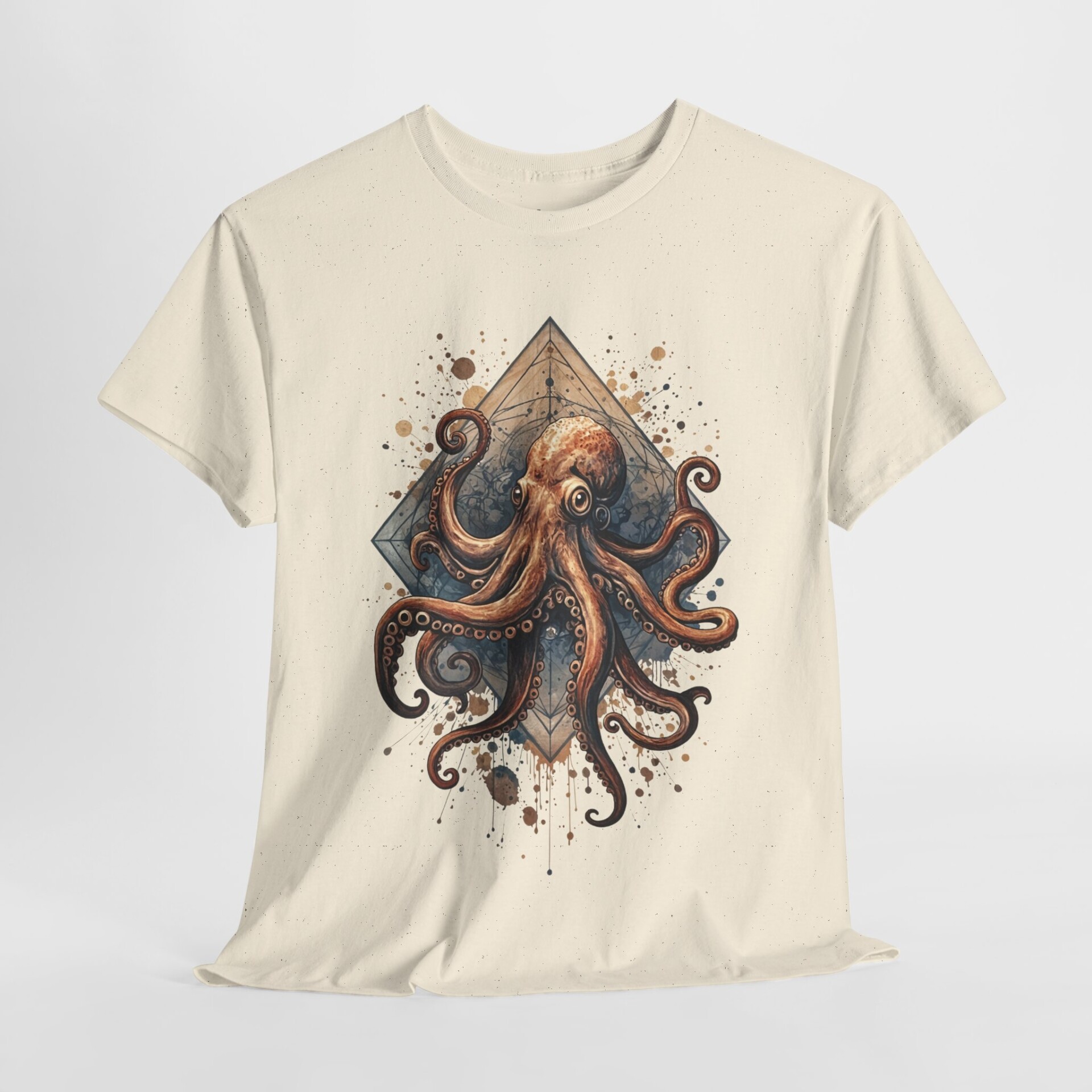 Dive into “Aquatic Whimsy”—a 100% cotton tee that brings an imaginative underwater world to life. Starring a beautifully illustrated octopus framed by playful geometric shapes and ink-splatter details, this shirt is a tribute to oceanic curiosity and vibrant style. Whether you choose classic or bold shades, “Aquatic Whimsy” adds a splash of creativity to any outfit, making it the perfect pick for lovers of art, adventure, and all things wonderfully weird.